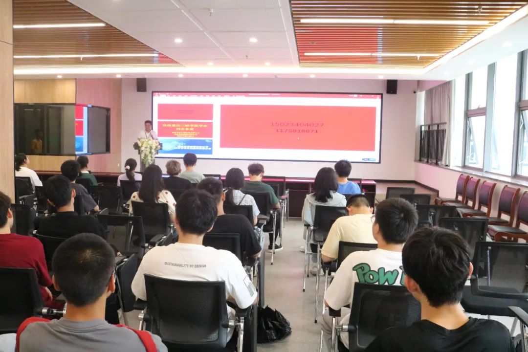 在科创中心3楼路演大厅,普佑生物综合管理部谭总发表讲话,他引导同学们发现自身优势,准确定位自己的职业规划,欢迎同学们以后到普佑生物实习工作。随后,在普佑生物工作的三峡学院学长给同学们介绍了公司的基本情况。